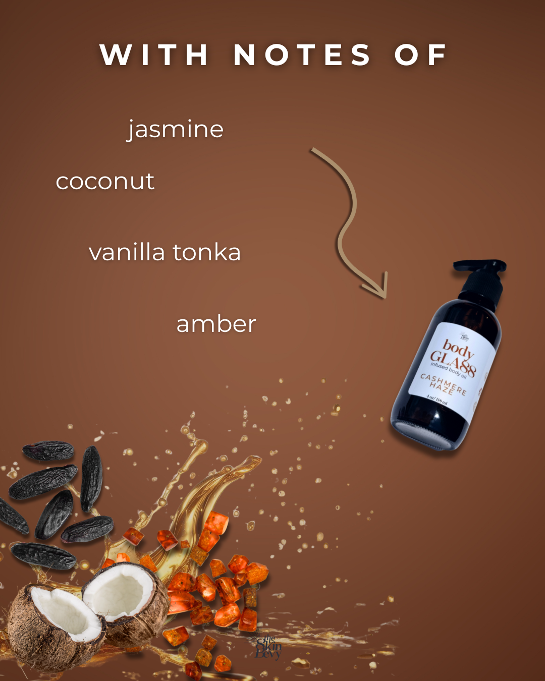 Warm, sexy, and ultra-smooth. With notes of coconut, vanilla tonka, jasmine, and amber, this silky body oil nourishes your skin and layers beautifully with your favorite scents.