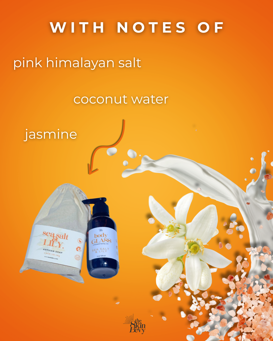 Clean, airy, and effortlessly elegant—our Sea Salt & Lily Bundle brings a splash of ocean breeze and soft florals to your routine, leaving your skin refreshed, hydrated, and delicately perfumed.